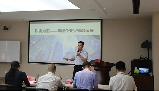 ▲鄭州地產集團投資管理有限公司 總經理 于通 試講《以史為鑒 明星企業(yè)興衰啟示錄》