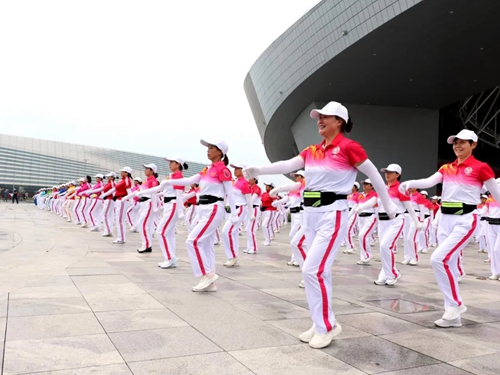 在奧體中心開闊的平臺(tái)上,群眾們開展健步走活動(dòng),他們踏著快樂的節(jié)拍,每個(gè)人的臉上都洋溢著笑容,收獲著滿滿的幸福。