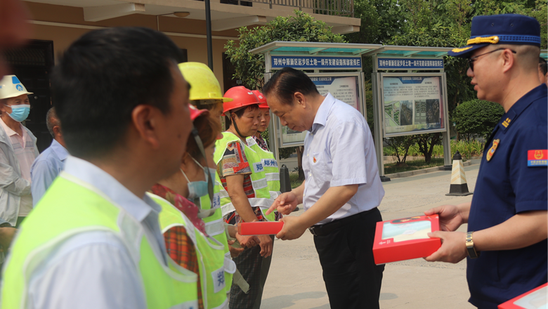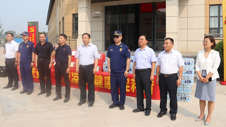 進入夏季以來,持續(xù)出現(xiàn)的高溫天氣,給奮戰(zhàn)在建設(shè)一線的施工人員帶來嚴(yán)峻考驗,廣大職工不畏酷暑,堅守崗位,辛勤付出。為做好廣大職工的防暑降溫工作,切實保護職工身體健康,6月11日,鄭州市總工會、鄭州市消防救援支隊到鄭州地產(chǎn)集團西流湖公司中原新區(qū)土地一級開發(fā)項目指揮部開展主題為“送清涼、送安全、送健康、促和諧”的夏季送清涼活動。鄭州市一級巡視員、市總工會黨組書記、主席趙新中,市消防救援支隊副支隊長、滅火救援指揮部部長李隆,市總工會副主席宋少丹,鄭州地產(chǎn)集團有限公司監(jiān)事會主席、工會主席李靜波及西流湖公司黨支部書記、董事長、總經(jīng)理吉獻亮等領(lǐng)導(dǎo)出席活動?;顒佑晌髁骱靖笨偨?jīng)理昌磊主持。