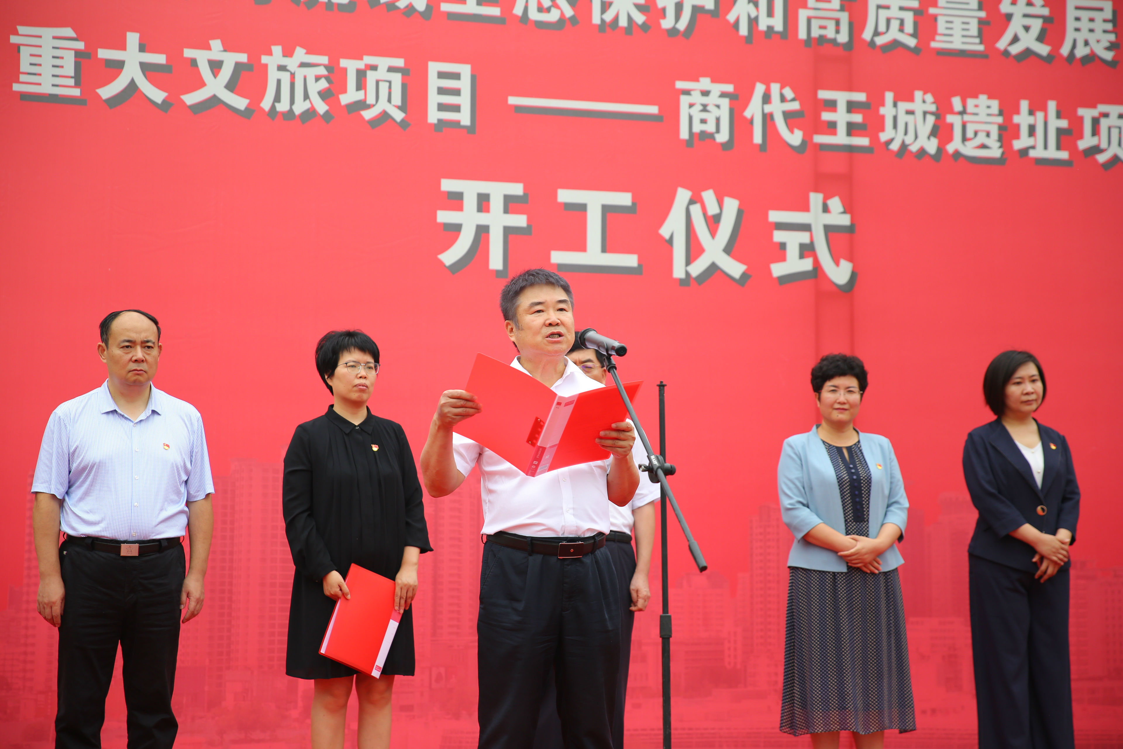 2020年7月24日上午,鄭州市建設(shè)黃河流域生態(tài)保護(hù)和高質(zhì)量發(fā)展核心示范區(qū)重大文旅項(xiàng)目集中開工活動(dòng)——商代王城遺址項(xiàng)目開工儀式在亳都古巷項(xiàng)目現(xiàn)場(chǎng)舉辦。管城回族區(qū)委副書記、區(qū)長(zhǎng)張艷敏等區(qū)委區(qū)政府領(lǐng)導(dǎo)出席,商都控股公司黨支部書記、董事長(zhǎng)牛曉亮應(yīng)邀參加本次活動(dòng)。