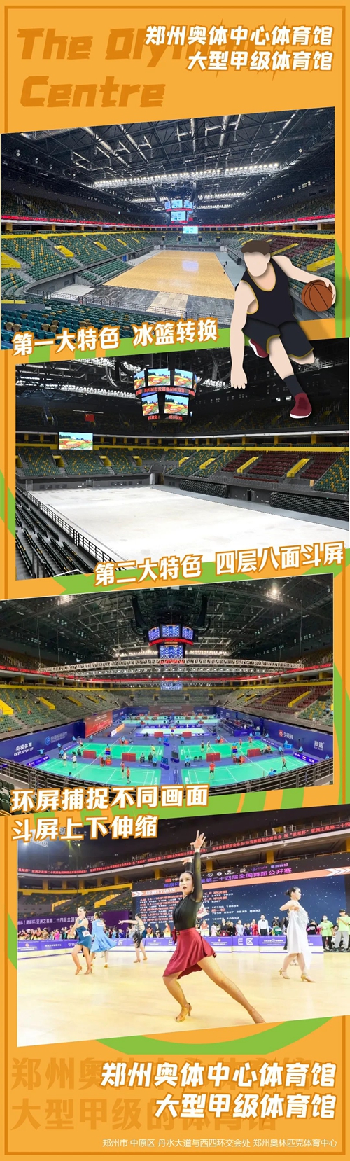 奧體中心體育館作為大型甲級(jí)體育館,空間使用靈活,場(chǎng)地利用率高。目前已經(jīng)舉辦了2019年世界乒聯(lián)巡回賽總決賽、2020年世界乒聯(lián)巡回賽總決賽、2019年全國(guó)羽毛球單項(xiàng)冠軍賽、2021年全國(guó)羽毛球冠軍賽暨第十四屆全運(yùn)會(huì)羽毛球項(xiàng)目資格賽、2022年河南省第一屆職業(yè)技能大賽、2023永慶安瀾德云社岳云鵬·孫越相聲專場(chǎng)等知名賽事活動(dòng)。下半年,將有更多知名演藝、賽事活動(dòng)在奧體中心體育館舉辦。主館西側(cè)為總面積約2100平方米的籃球熱身館,目前已經(jīng)舉辦過籃球、跆拳道、羽毛球等體育賽事,以及企業(yè)展銷、社區(qū)聯(lián)誼、動(dòng)漫展等活動(dòng);北側(cè)為冰上運(yùn)動(dòng)中心,擁有1800平方米國(guó)際標(biāo)準(zhǔn)冰,致力于為中部地區(qū)提供從啟蒙到精英級(jí)的系統(tǒng)化冰上運(yùn)動(dòng)培訓(xùn)。