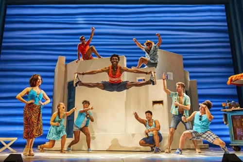 迪斯科風(fēng)格在《媽媽咪呀!》中無處不在。從音樂、舞蹈,到服裝設(shè)計,都給人以舞廳“蹦迪”的動感與歡樂體驗。而ABBA 樂隊熱情洋溢的曲風(fēng),轉(zhuǎn)化成希臘島嶼的陽光、沙灘,所有的金曲與熱舞也洋溢著地中海燦爛陽光下的積極與樂觀,猶如一首生命的贊歌。正如《星期日快報》的評價: