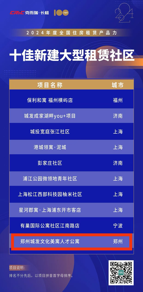 近日,克而瑞2024年度中國住房租賃產(chǎn)品力榜單揭曉,鄭州城發(fā)文化美寓人才公寓憑借卓越的綜合產(chǎn)品力,榮獲“十佳新建大型租賃社區(qū)”稱號。這一榮譽不僅是對鄭州城發(fā)美寓人才公寓項目的高度認可,更是對其在住房租賃領域創(chuàng)新實踐的肯定。
