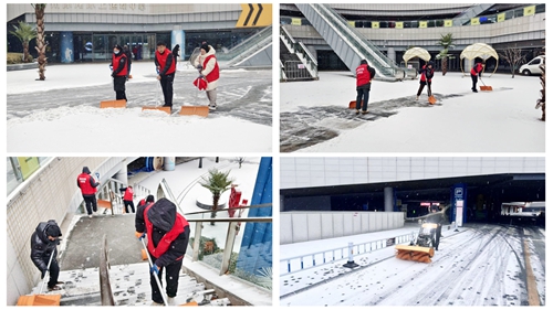 奧體中心迅速啟動雨雪應急預案,聚焦核心通道與經(jīng)營區(qū)域,多輪布撒融雪劑、清除積雪、防護設(shè)施,不間斷開展防墜雪巡查。黨員突擊隊帶頭沖鋒,對南北門、東廣場等重點區(qū)域掃雪除冰,全力保障人員與車輛通行安全,確保運營平穩(wěn)有序。