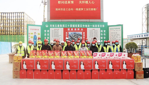 春節(jié)將至,為將工會(huì)組織的溫暖及時(shí)送到廣大工友手中, 2月7日下午,鄭州市總工會(huì)機(jī)關(guān)工會(huì)主任王銀倉、副主任張翔宇,鄭州地產(chǎn)集團(tuán)監(jiān)事會(huì)主席、工會(huì)主席李靜波、女工主任鄭琪在西流湖公司副總經(jīng)理、工會(huì)主席昌磊的陪同下,深入中原新區(qū)三十里鋪中安置區(qū)施工現(xiàn)場,開展春節(jié)送溫暖慰問活動(dòng)。