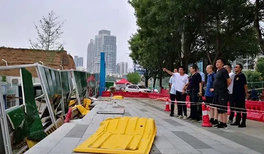 汛情緊急,快速應(yīng)對力保平安。公司黨支部書記、執(zhí)行董事、總經(jīng)理趙佳佳對于防汛工作作出工作部署,工程管理部即時啟動24小時項目值守,扎實做好暴雨防御、隱患排查、雨水倒灌、排水等各項工作,全力保障工程安全。7月22日,公司總經(jīng)理趙佳佳、副總經(jīng)理郭燦帶隊在健康城項目所有標(biāo)段進行災(zāi)后安全隱患巡查。